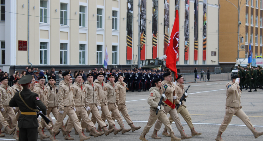 По площади маршировали юнармейцы, студенты Медколледжа имени Морозова, ученики школ, судебные приставы, сотрудники МЧС и ФСИН, воспитанники военно-патриотического клуба ”Авангард”.