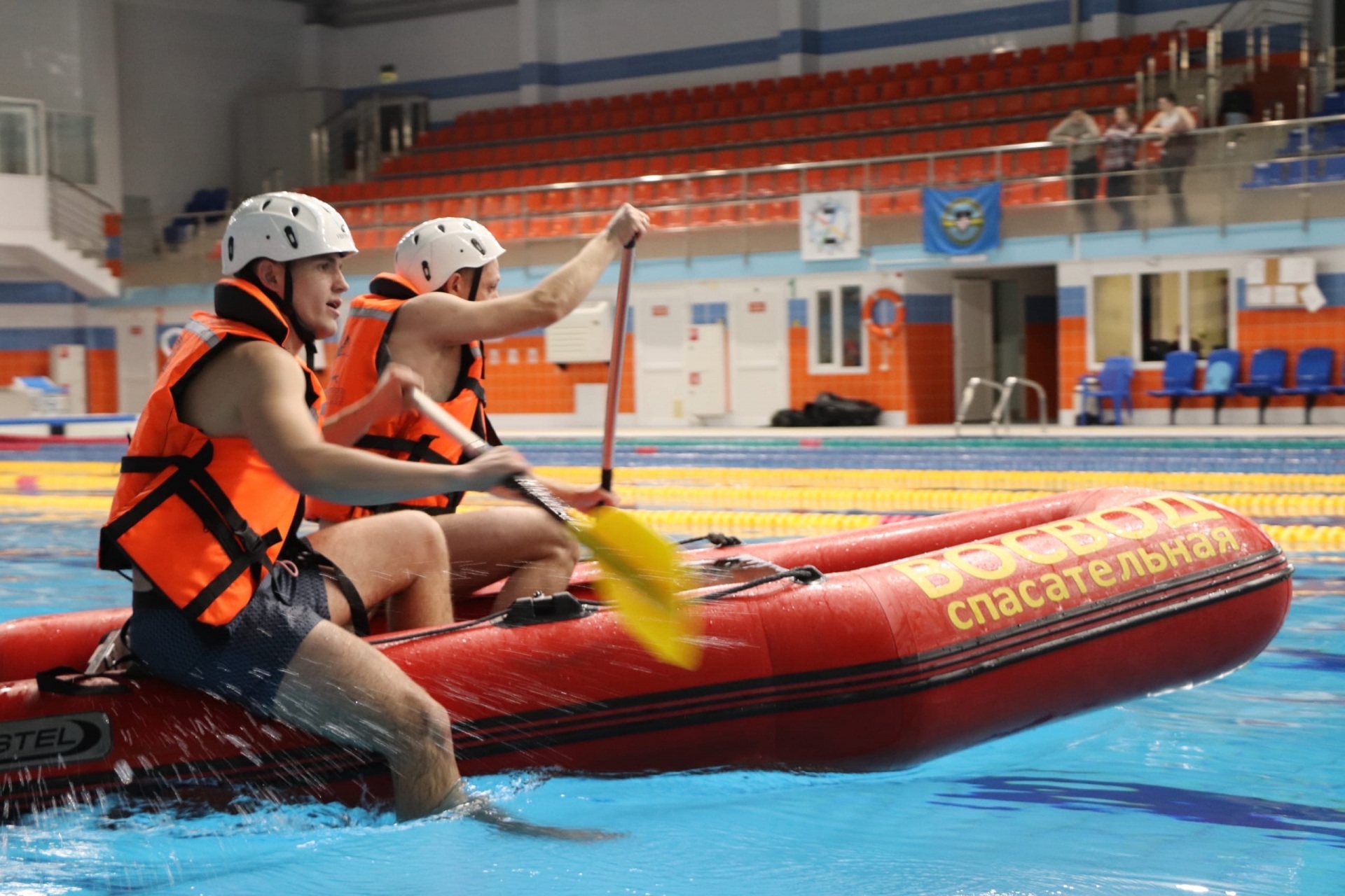 Самым зрелищным традиционно стало управление спасательной надувной лодкой, которую необходимо было опрокинуть, потом забраться обратно и продолжить движение по назначенному курсу. Судьями оценивалось не только время прохождения дистанции. Штрафные баллы назначались за касание буйков, выход за границы обозначенной зоны и потерю весел.