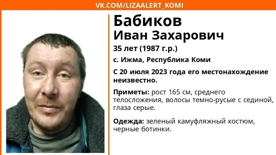 В Ижме пропал Бабиков Иван Захарович 35 лет.