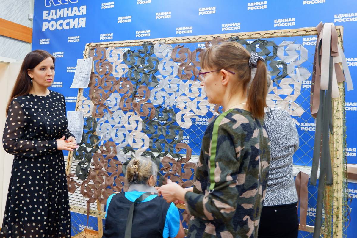 На площадке «Единой России» проводят мастер-классы по изготовлению маскировочных сетей