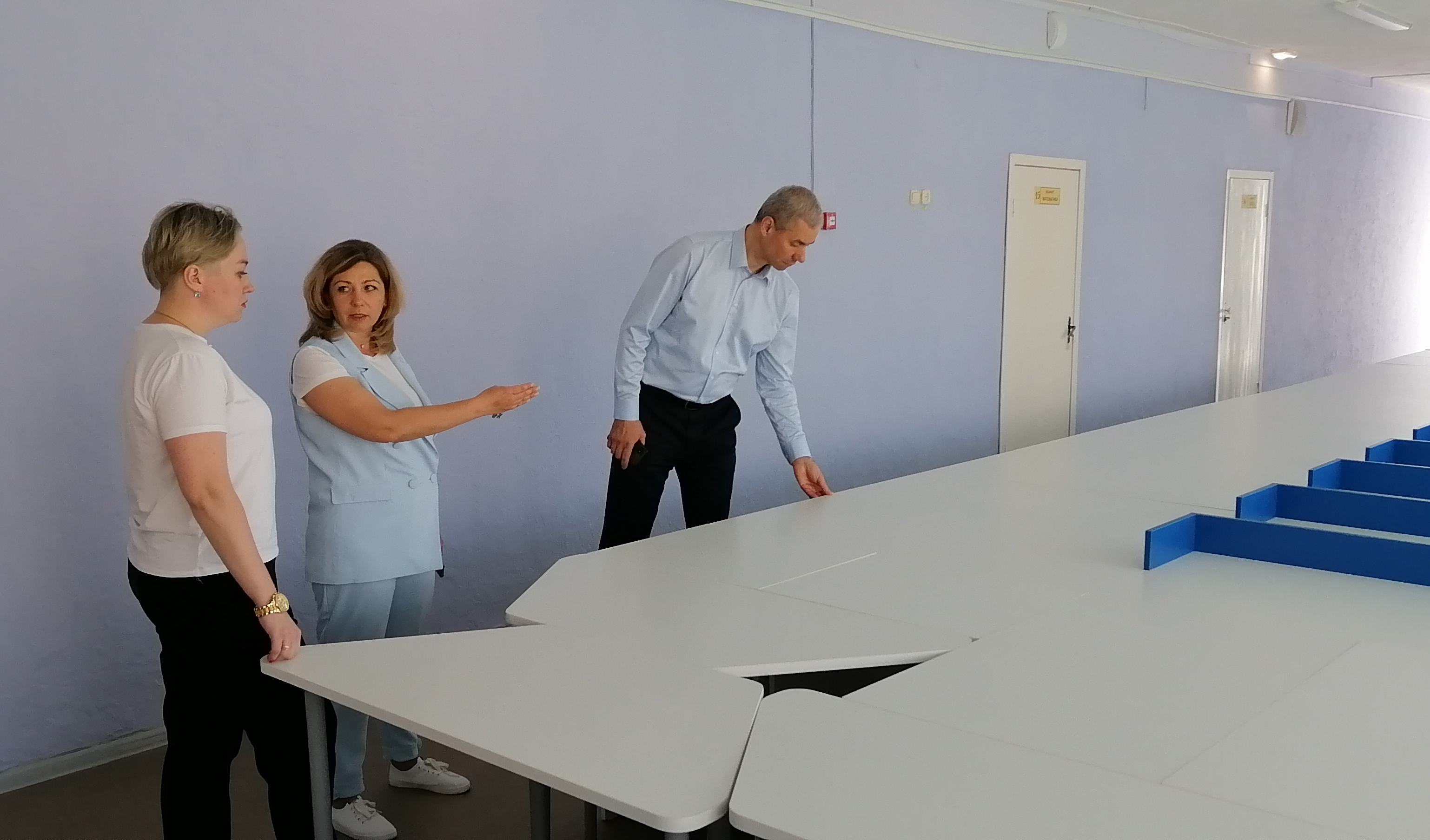 В ходе визита в поселок Северный временно исполняющий обязанности главы города Александр Камкин со своим заместителем Валентиной Шукюровой и начальником управления культуры города Ольгой Павелко посетили школу №42, где с 1 сентября откроется центр образования естественно-научного и технологического профилей «Точка роста».