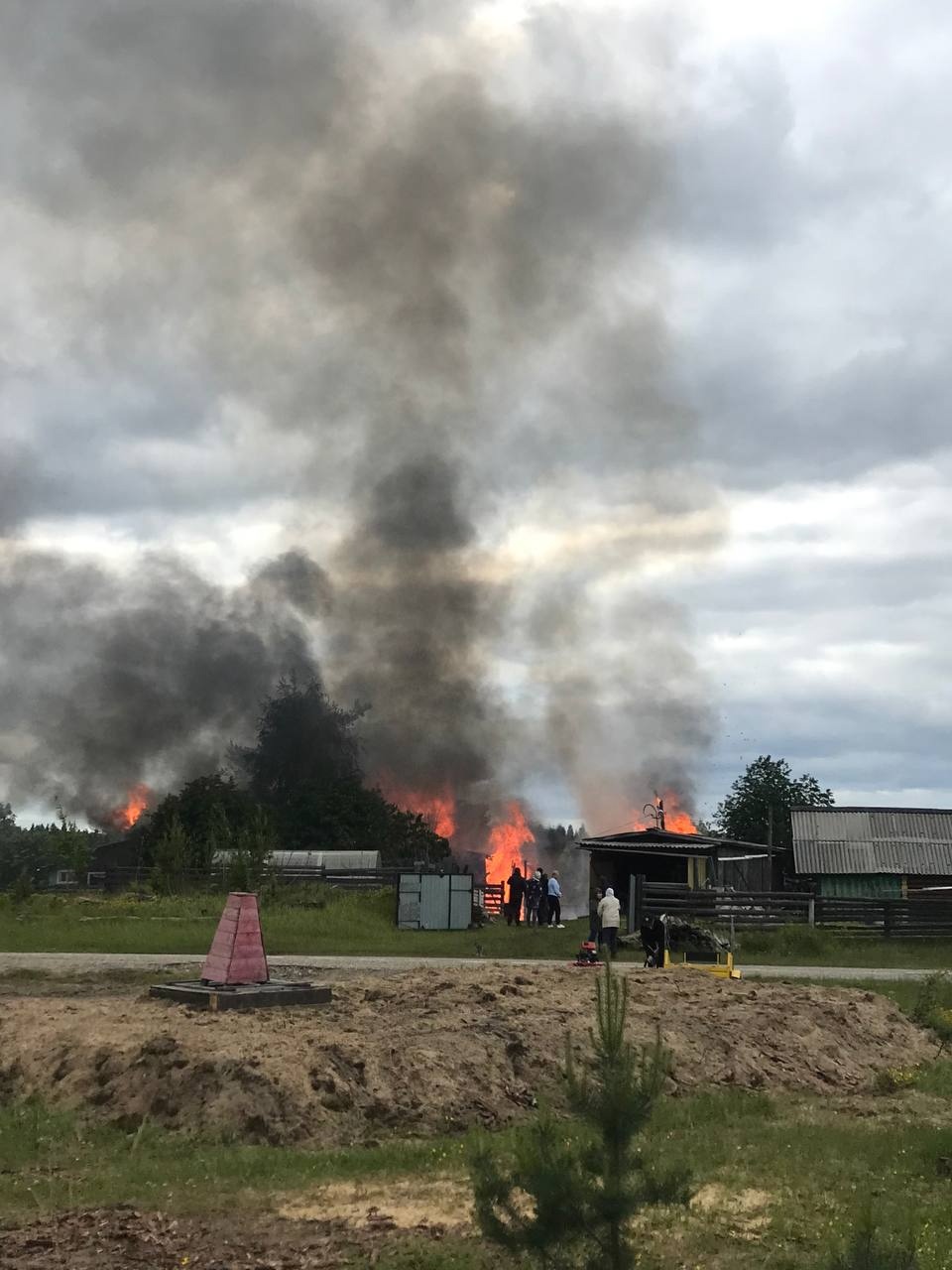 Из-за сильного ветра огонь перекинулся на летнюю кухню, сарай и хлев, разносил искры по всему поселке.