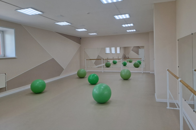 Обновлённым своих посетителей встретит осенью и зал фитнес-аэробики. Помещение капитально отремонтировали по проекту #НародныйБюджет. Заменили зеркала, покрасили стены и потолок, уложили специальное нескользящее напольное покрытие для спортивных залов. Глава округа Николай Такаев лично убедился: работы выполнены качественно и раньше намеченного срока.