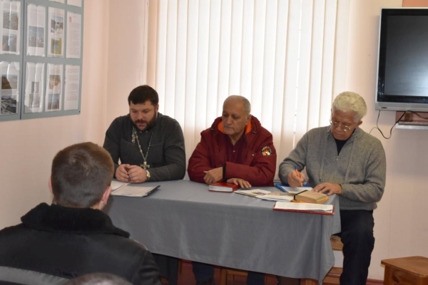 В помещении для проведения воспитательной работы, расположенном в общежитии отряда по хозяйственному обслуживанию ведомственной больницы № 18, иерей Роман рассказал осужденным об истории возникновения, зарождения и традициях православной религии, и её основах.