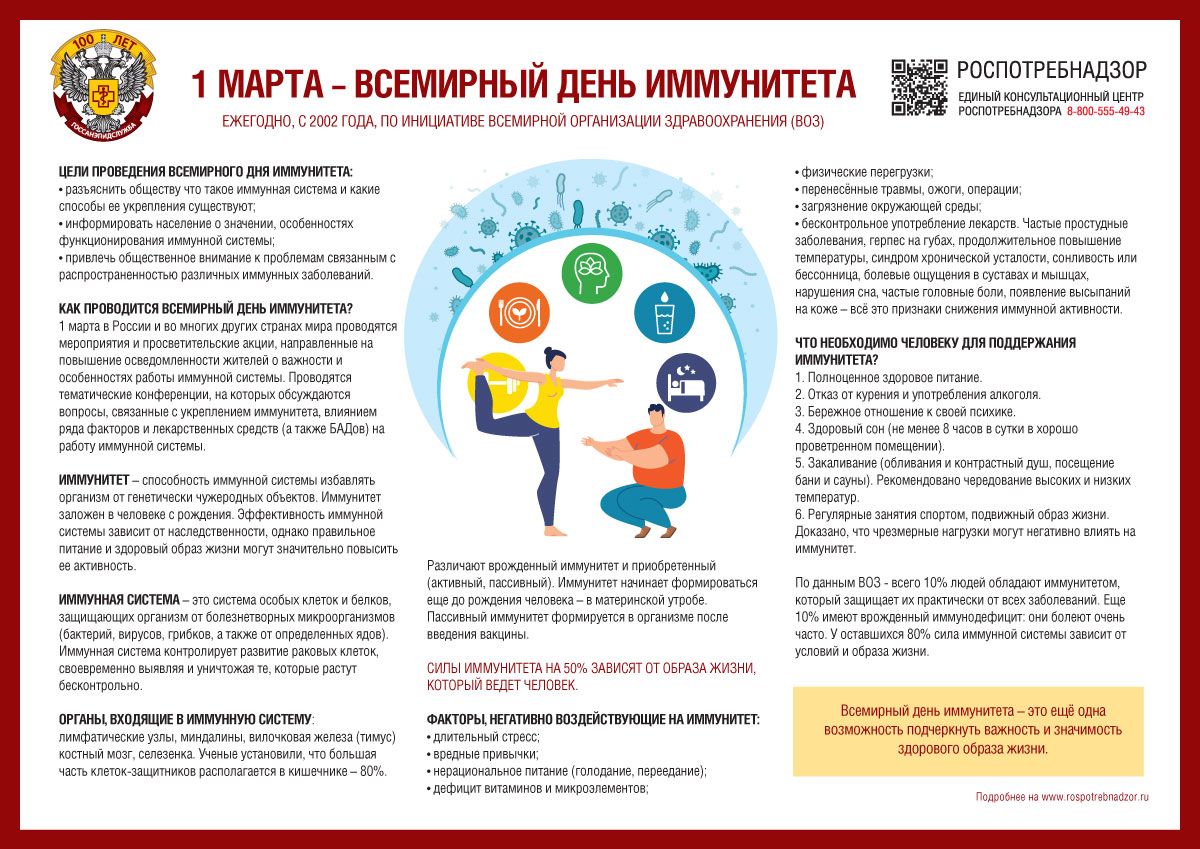 Ежегодно, с 2002 года, по инициативе Всемирной организации здравоохранения (ВОЗ), 1 марта отмечается Всемирный день иммунитета.