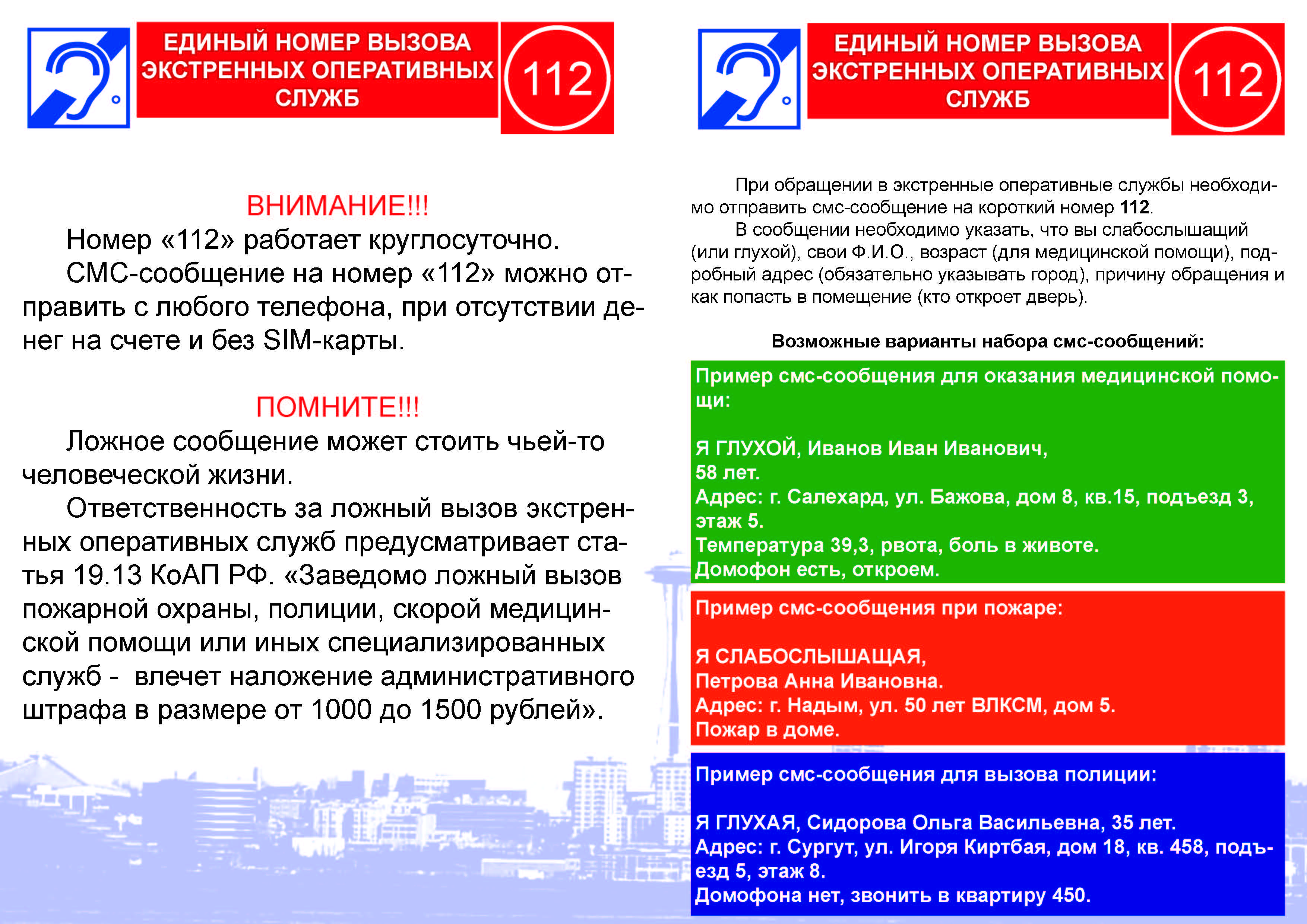Памятка по обращению на номер «112» при помощи SMS-сообщения